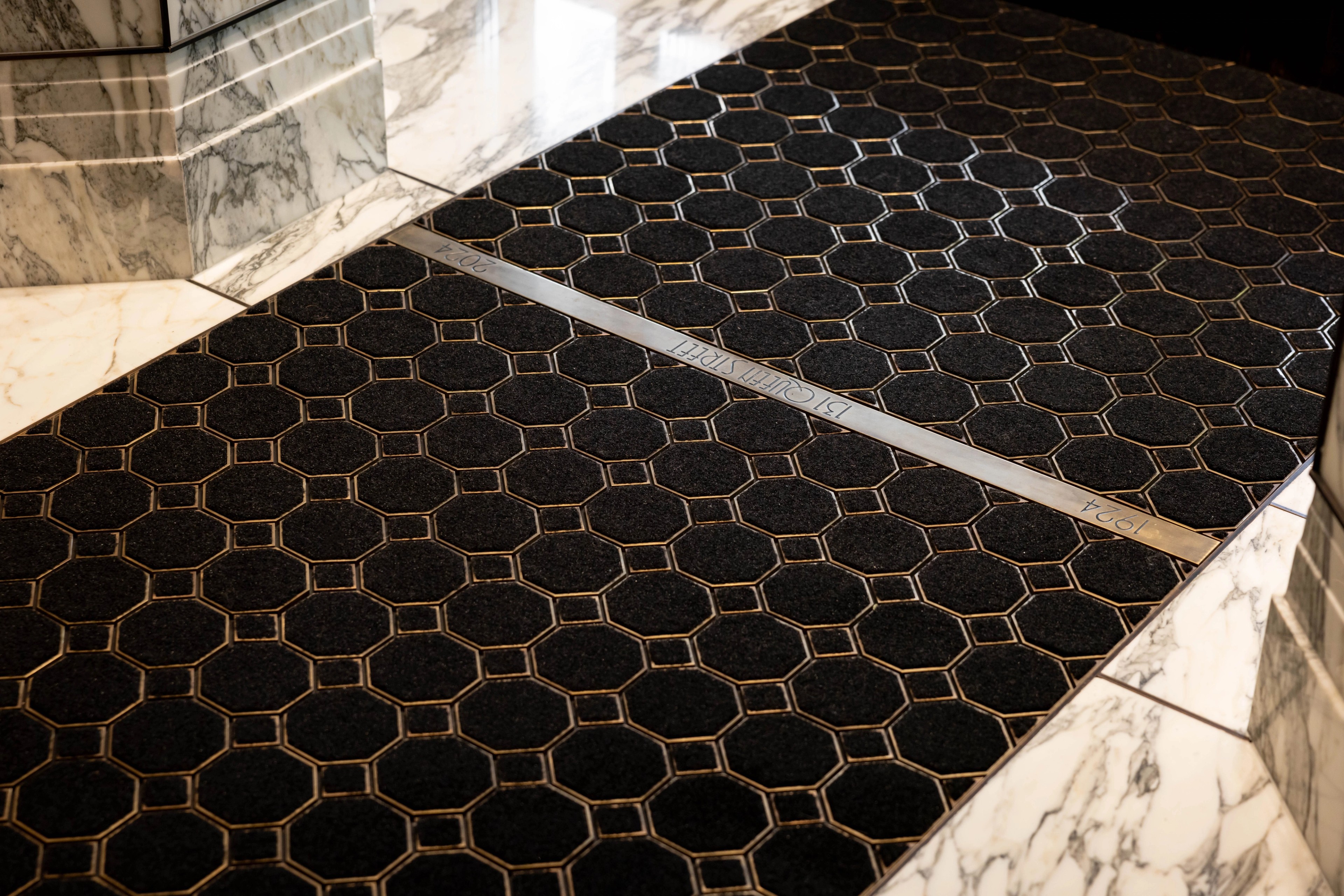 Sara Ford, GM of Krukziener Properties says ‘131 Queen has what can only really be described asa magnificent lobby – the most finely detailed in New Zealand, if not Australasia.’ Andrew Krukziener’s attention to detail is evident in every aspect. The entrance flooring plays an integral role in this, featuring bronze and marble flooring, custom designed 100oz wool carpets and a bespoke octagonal brass and black mat by Advance Flooring, all designed to complement the restoration.